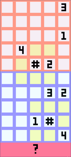 (for example, the tile immediately beneath the # and the divider cannot be a 2, because there is already a 2 to the right of the #)