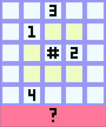 each # is surrounded diagonally by the numbers 1, 2, 3, 4 with no duplicates
