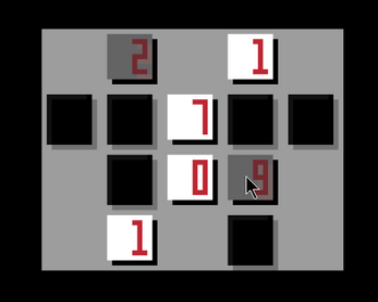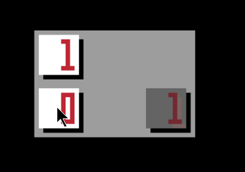 two adjacent grey tiles (of value 1 and 0) subtract into a black tile. grey tiles stick together.black tiles